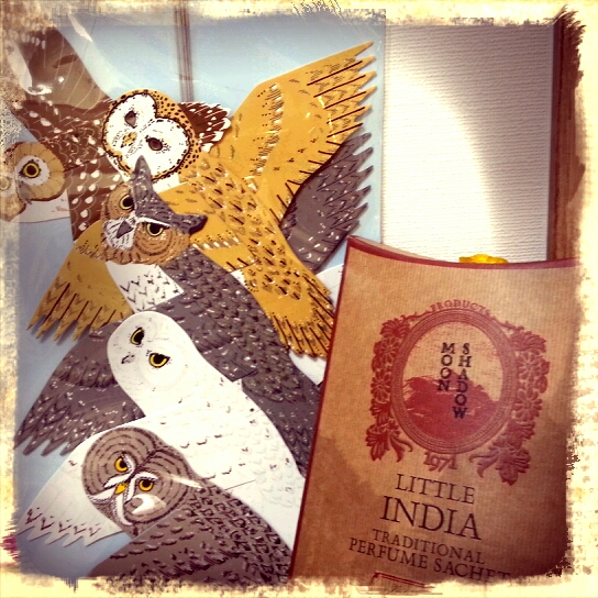 フクロウのモビールとすっごい好きな香りのサシェ。