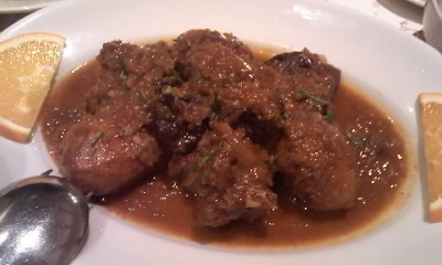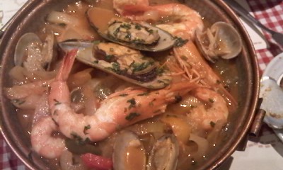 上がウサギのプルーン煮。下が魚介のなんとか。