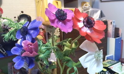 父親の家にお花を持っていった瞬間咲ききったアネモネ。